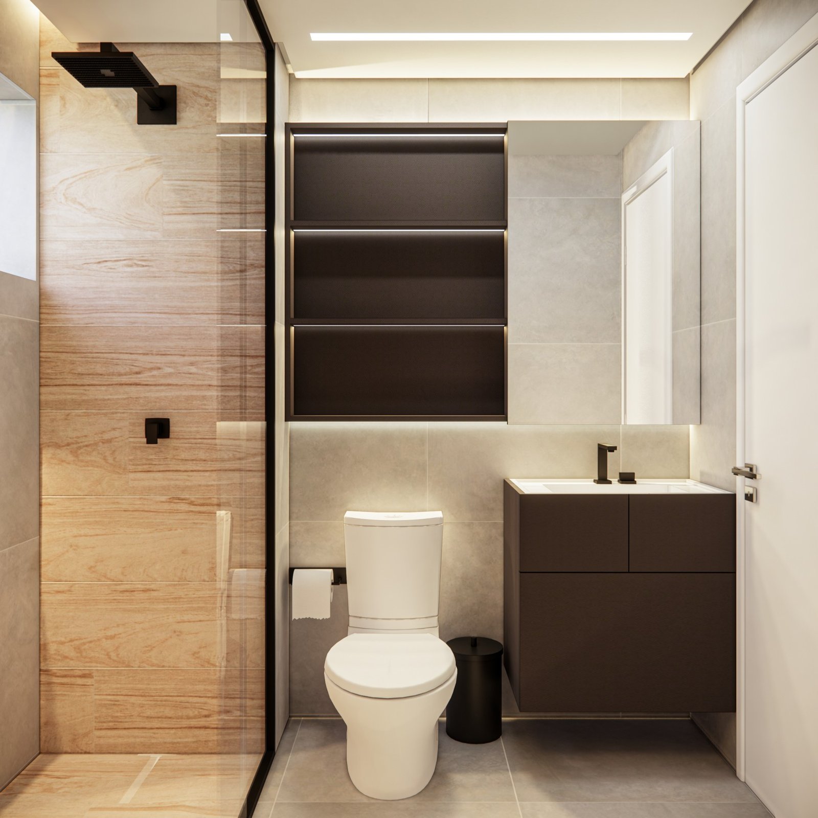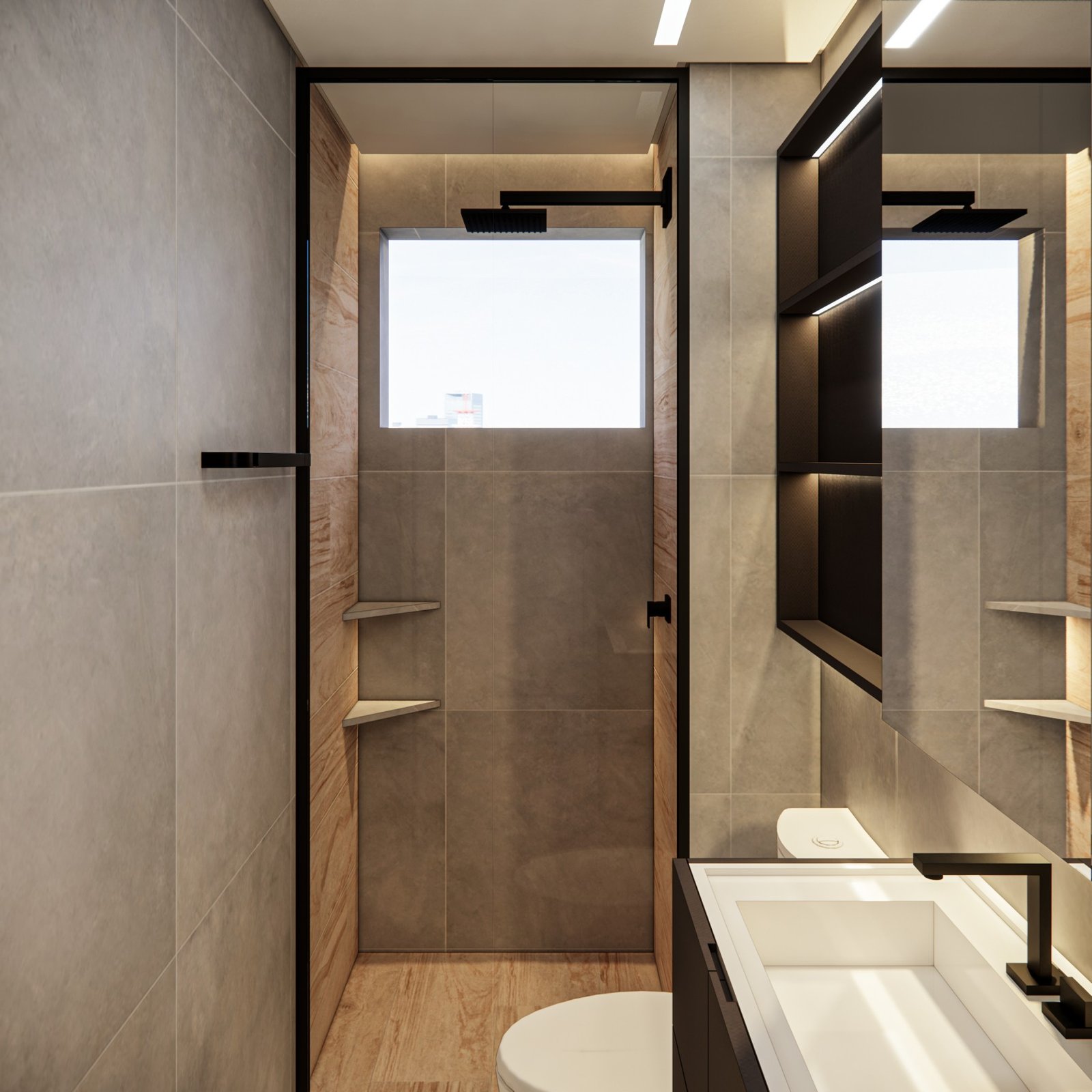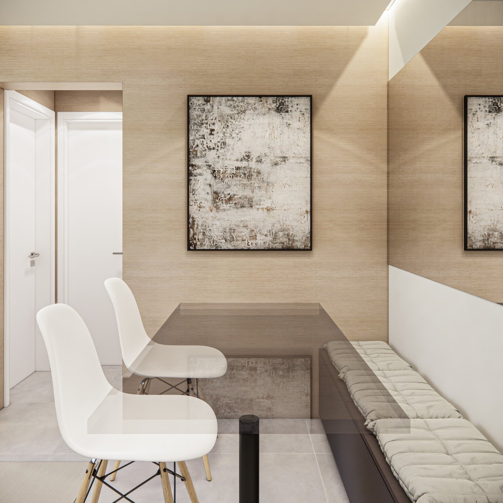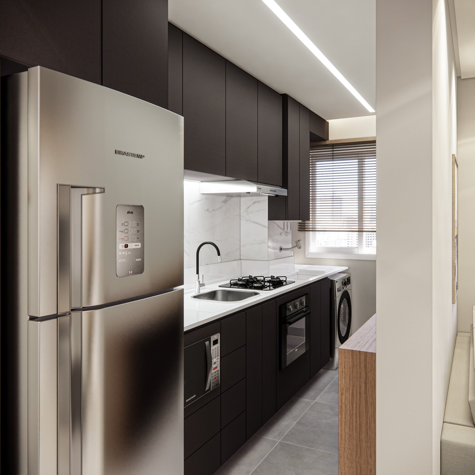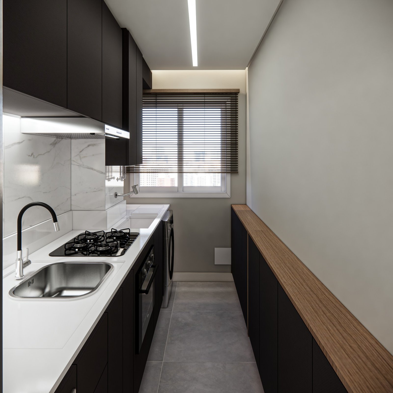 Este apartamento de 45 m² está localizado em Osasco. Optamos por usar bastante marcenaria para criar diferentes funcionalidades nos ambientes, garantindo que cada espaço tenha um uso específico. Os acabamentos são em tons neutros, com algumas cores escolhidas para adicionar personalidade ao lugar. Além disso, utilizamos quadros e uma iluminação que combina funcionalidade, conforto e um toque intimista.